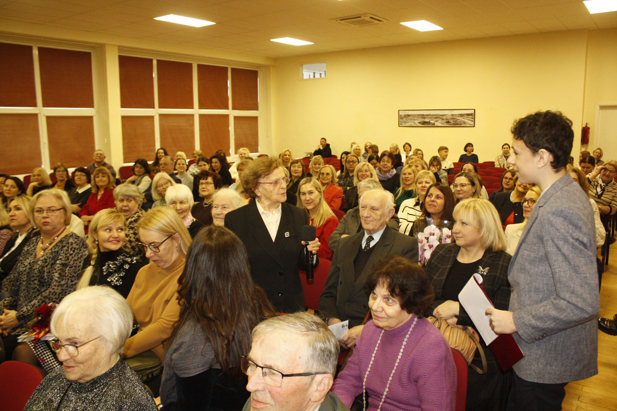 Kūno kultūros mokytoja Stanislava Šarakojytė į susirinkusius kreipėsi eilėmis ir labai stebėjosi, kad šiais laikais koridoriuose stovi suolai. Anuomet vaikai per pertraukas sportuodavę, tad suolų neprireikdavę. Pasakojo kartą palikusi vaikus sporto salėje ir prisakiusi taip sportuoti, kad jai grįžus būtų suprakaitavę. Darbo mokykloje fragmentais pasidalino J. Janonienė, P. Adžgauskas, buvusio direktoriaus Antano Rutkausko prisiminimais pasidalino dukra Jūratė Morkvėnienė. Sveikinimo žodžius tarė buvusios direktorės Janina Vėželienė bei Aldona Skučienė.