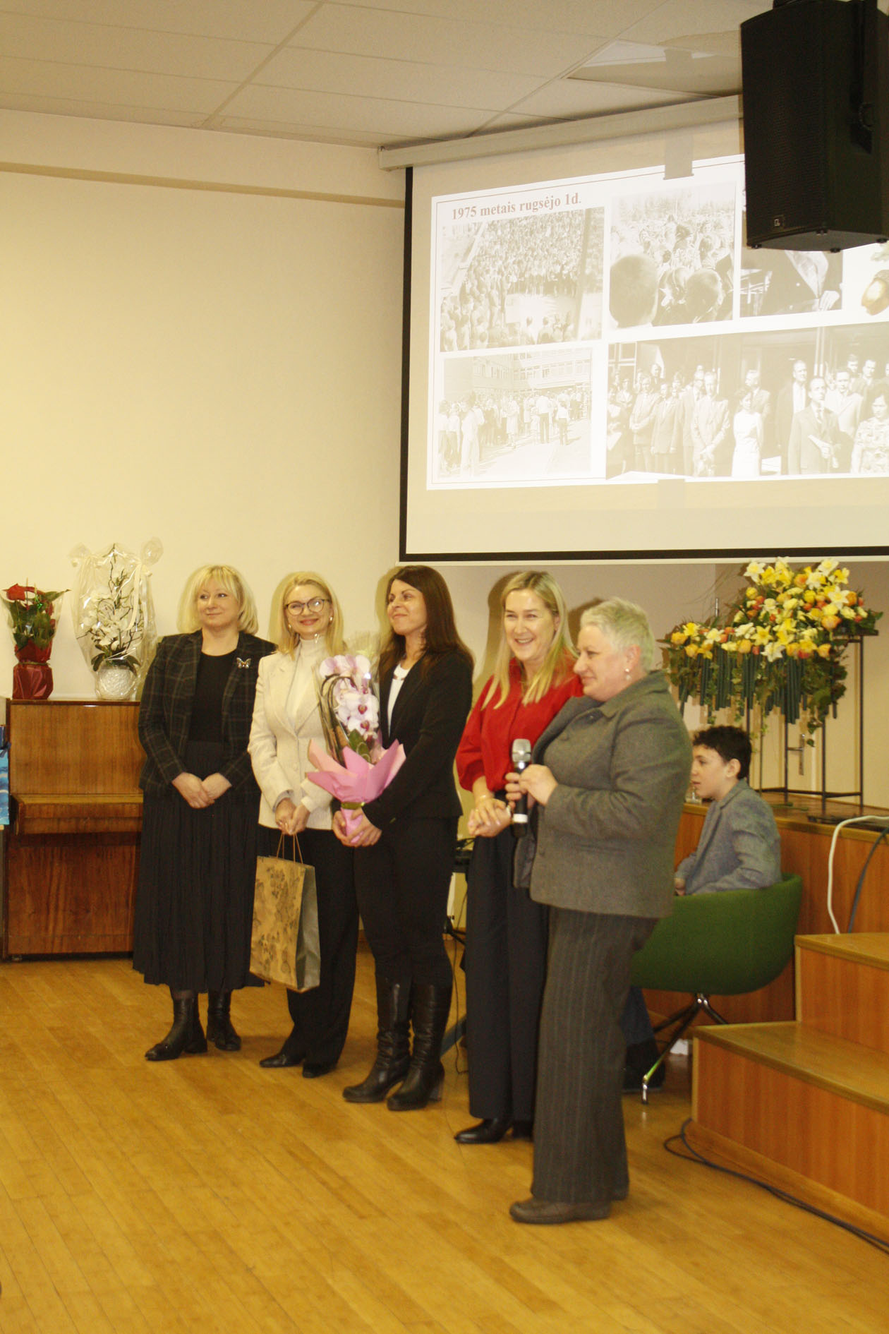 Renginio pradžioje susirinkusius pasveikino mokyklos direktorė Birutė Misiūnienė, kuri kalbėjo, kad mokyklos sukaktis – proga sustoti ir padėkoti tiems, kurie dėjo pamatus: buvusiems mokytojams, vadovams, darbuotojams, proga padėkoti dabartinei komandai už atsidavimą ir kantrybę, gebėjimą įžiebti žinių troškimą mokinių akyse.