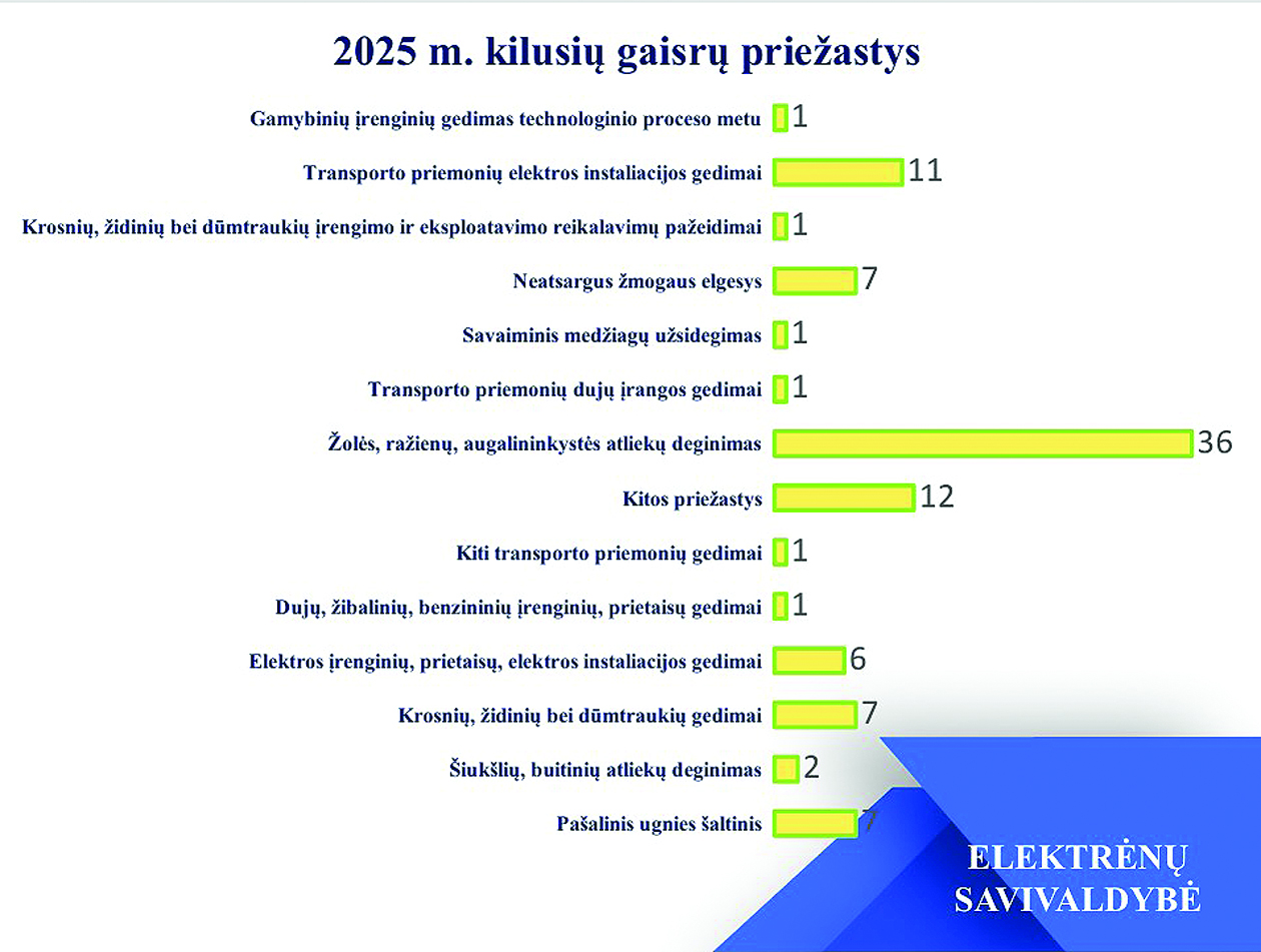 11 gaisrų įvyko dėl transporto priemonių elektros instaliacijos gedimų, 7 gaisrai dėl krosnių židinių ir dūmtraukių gedimų. Renginyje dalyvavęs Priešgaisrinės apsaugos ir gelbėjimo departamento prie VRM direktorius Renatas Požėla pasidalino Lazdijų rajono pavyzdžiu, kur žmonėms, gaunantiems paramą malkomis, savivaldybė organizuoja ir kaminų bei krosnių valymą. Jei savivaldybės administracija norėtų, šiuo pavyzdžiu galėtų pasekti.