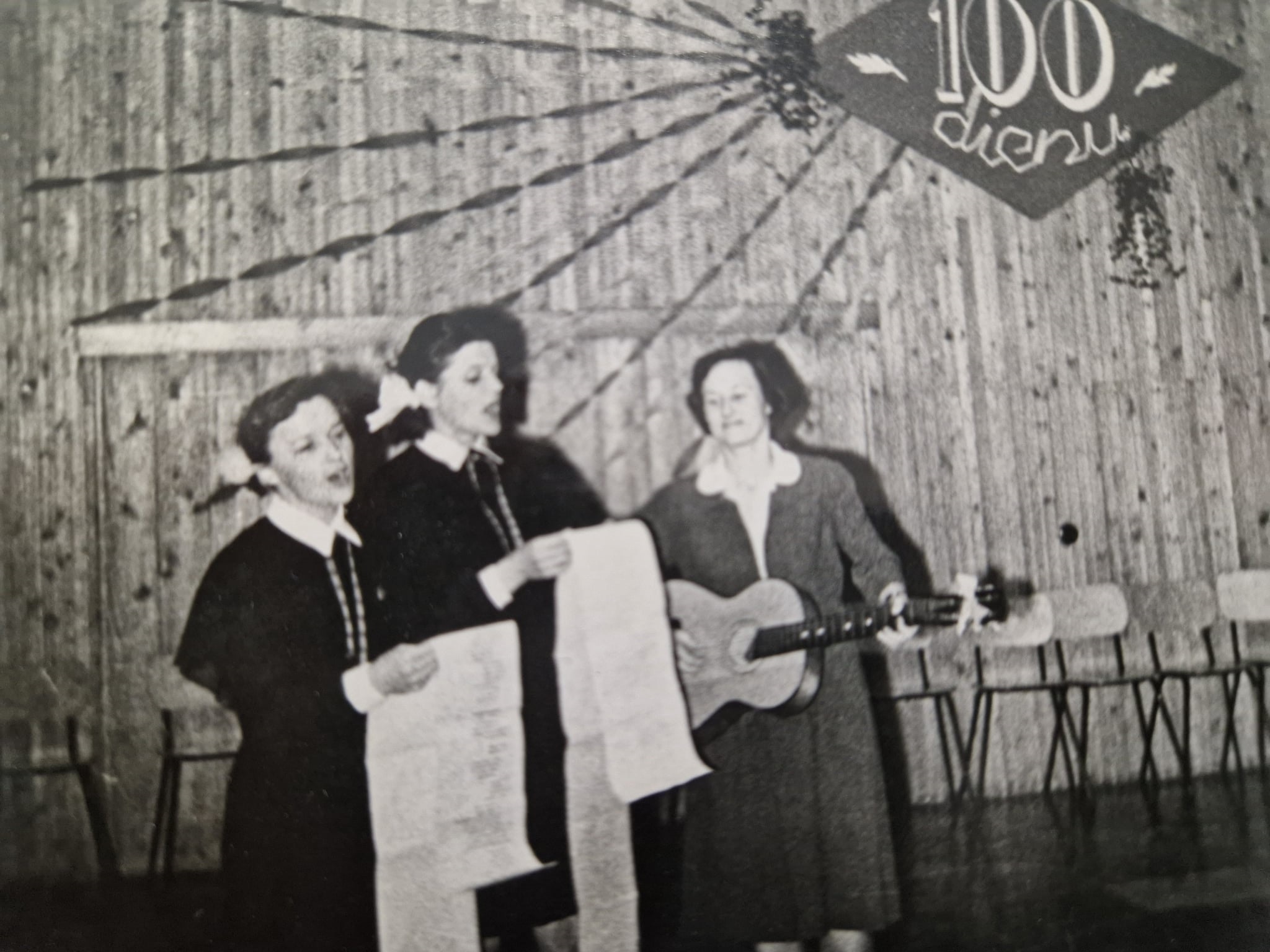 Mokykloje per 100-dienį. S. Šarakojytė, R. Liepinienė ir muzikos mokytoja Genovaitė Šmigelskienė