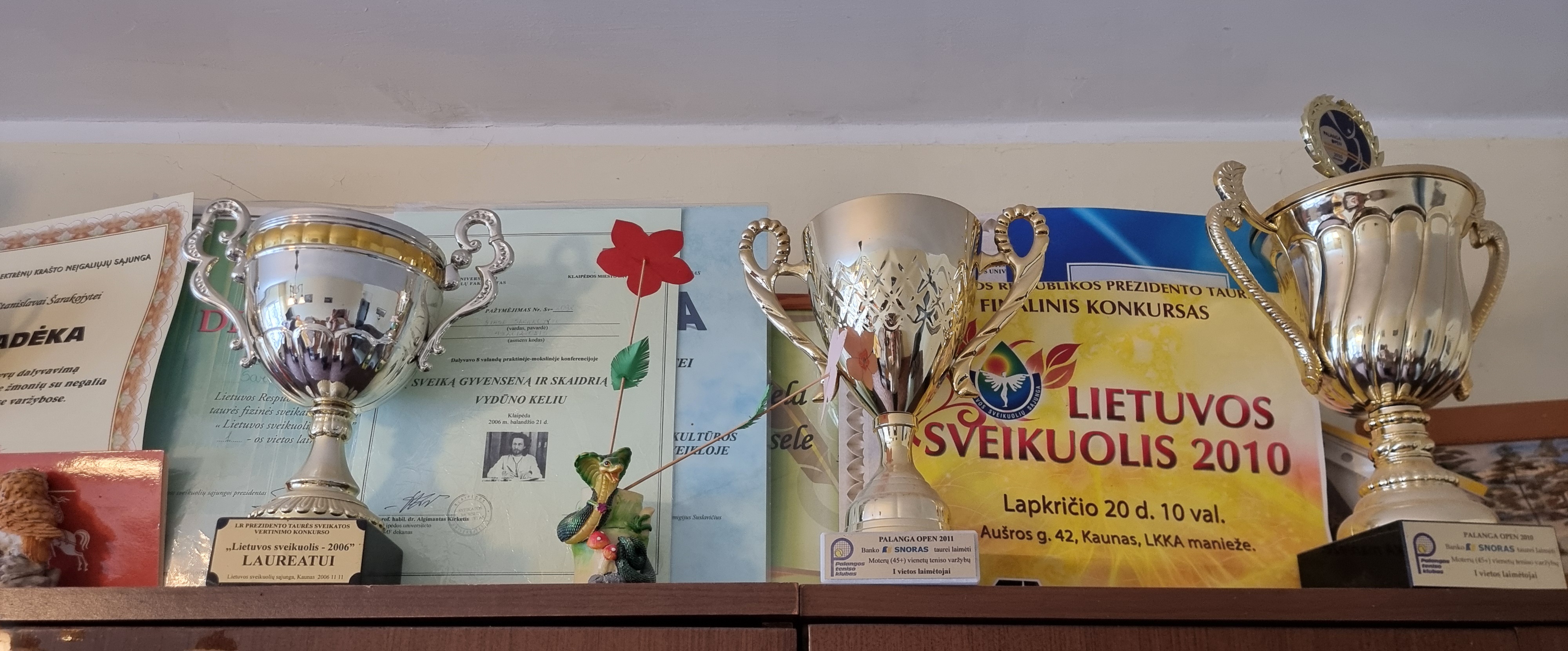 Svetainėje ant sekcijos puikuojasi net 10 gautų Prezidento taurių