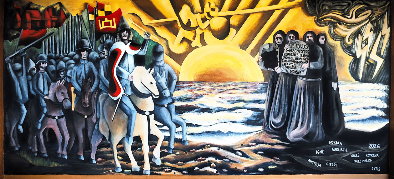 Šis simbolinis, naratyvinis monumentaliosios sieninės tapybos kūrinys organiškai įsilieja į gimnazijos erdvę, praturtindamas ją tiek estetika, tiek prasme.